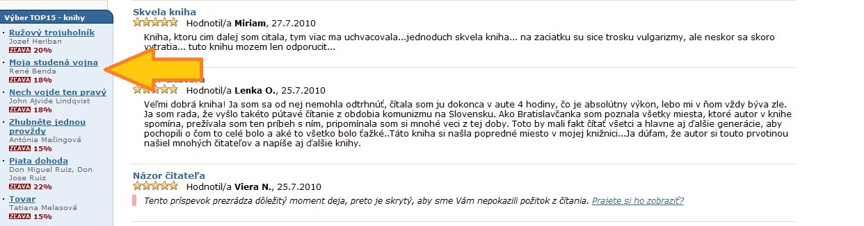 Prehľad umiestnení knihy Moja studená vojna v slovenských rebríčkoch